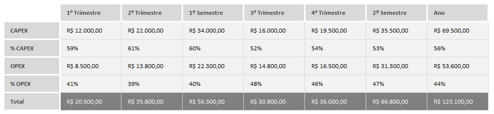 Faça o controle e comparação entre as despesas de capital (CAPEX - Capital Expenditure) e despesas operacionais (OPEX - Operational Expenditure)