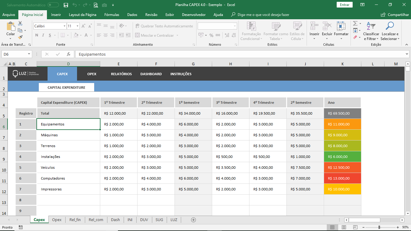 Baixar Versão DemonstrativaControle de Despesas de Capitais - CAPEX (Capital Expenditure)