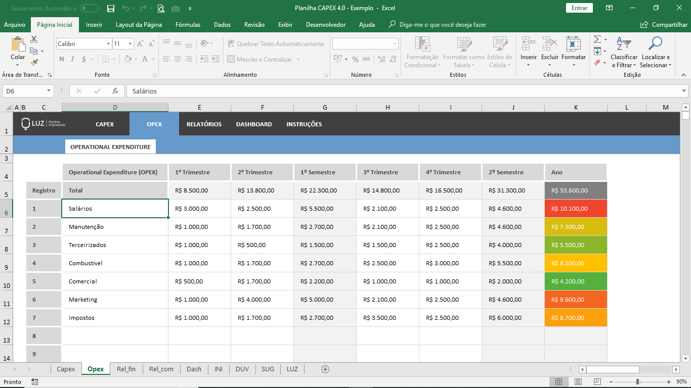 Faça o registro de todas as despesas OPEX do seu negócio (como gastos com impostos, salários de funcionários, aluguel, etc) e faça um controle anual desse tipo de gasto