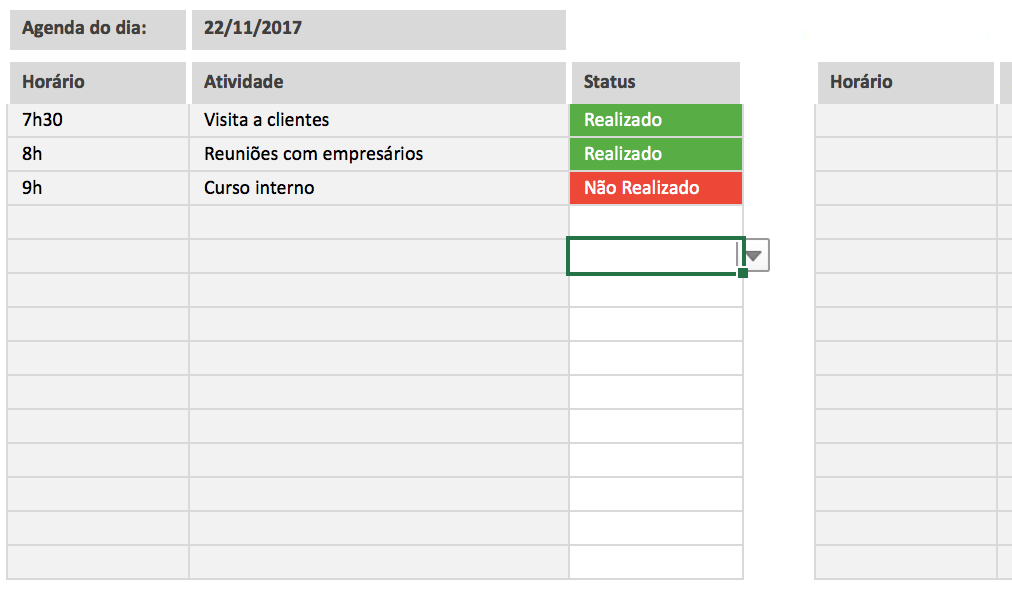 Não apenas a agenda geral, mas também a planilha vai listar automaticamente todos os eventos do dia que você abri-la!