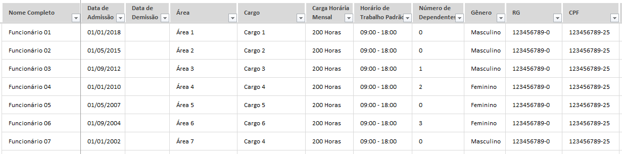 Conforme um negócio ganha maior porte, a boa gestão dos dados de sua equipe também cresce em importância. Com a nossa planilha, você consegue criar um registro com todos os dados relevantes de seus funcionários e buscá-las rapidamente sempre que necessário.