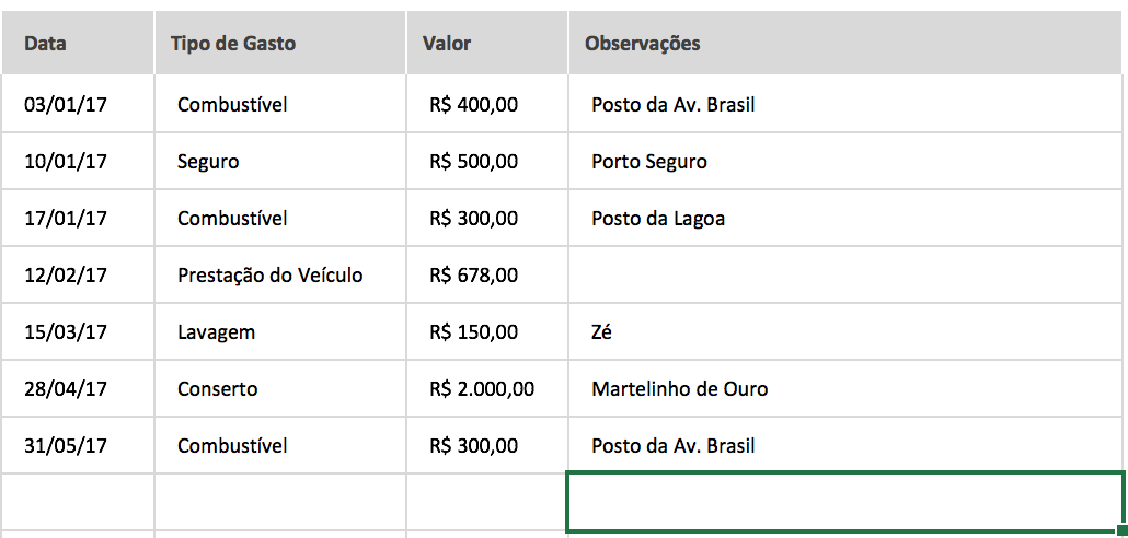 Você não só lançará seus ganhos, mas também todos os custos envolvidos na manutenção do seu veículo.