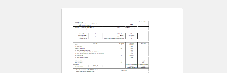 A planilha permite imprimir o holerite (contra cheque) completo de cada funcionário.